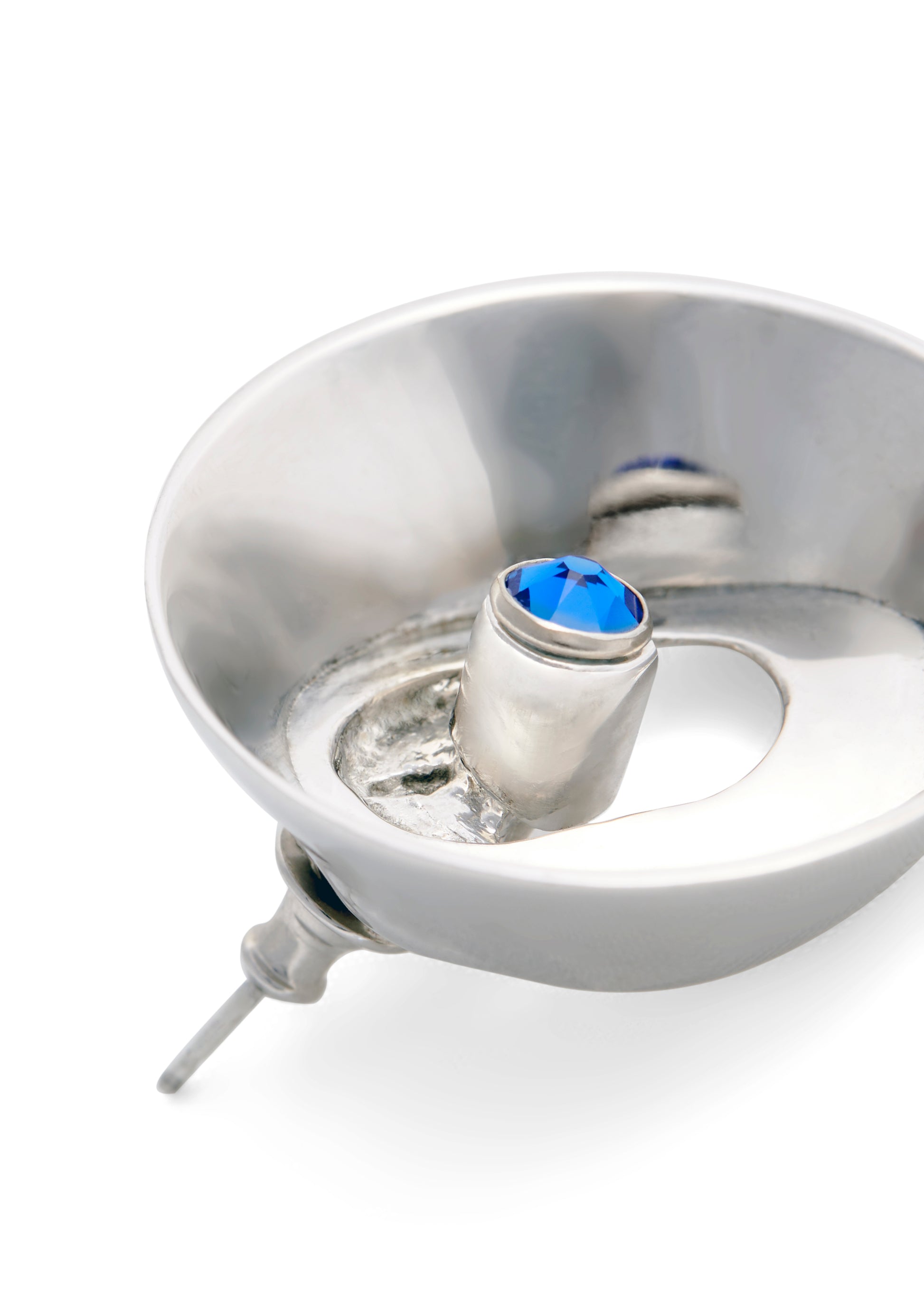 - Hairspray nozzle inspired earring with deep blue Sapphire detail